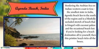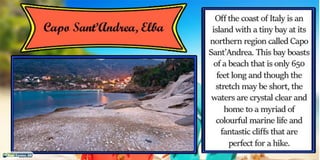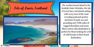 The document promotes a blog post on Tour Center's website that highlights the world's most underrated beaches. It encourages readers to visit the blog for detailed information about these unique beach destinations. The summary emphasizes the allure and lesser-known aspects of these locations.