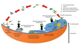 2. Various debridement methods are described, including mechanical, autolytic, enzymatic, surgical, hydrostatic, ultrasonic, and combinations of methods.