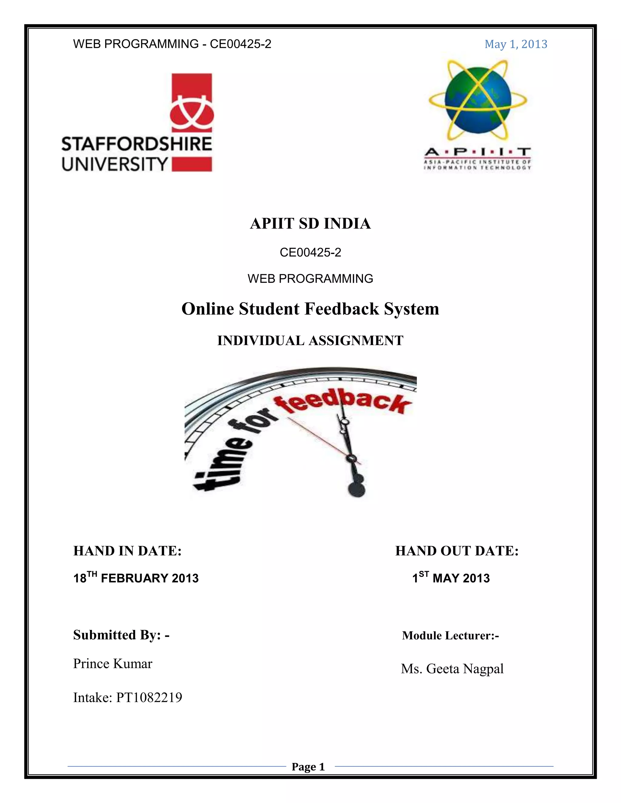 This document outlines the development of an online student feedback system. It includes objectives to create a unique system with exceptional quality and services. Key features include a database, user functions, and 4 main user types: students, faculty, program coordinators, and admins. The system allows students to provide feedback, faculty to view feedback, and coordinators to view consolidated feedback. Diagrams show the entity relationship diagram and database table structures. The remainder of the document covers storyboarding, mockups, testing plans, and analyses of the system.