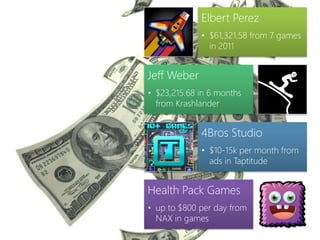 The document serves as a comprehensive guide for developers on marketing and monetizing Windows Phone apps, emphasizing the importance of marketing over product quality for app success. It discusses strategies such as leveraging beta-testers, optimizing app store visibility, and using ad networks effectively. Case studies illustrate successful monetization tactics and the significance of sustained app promotion before and after launch.
