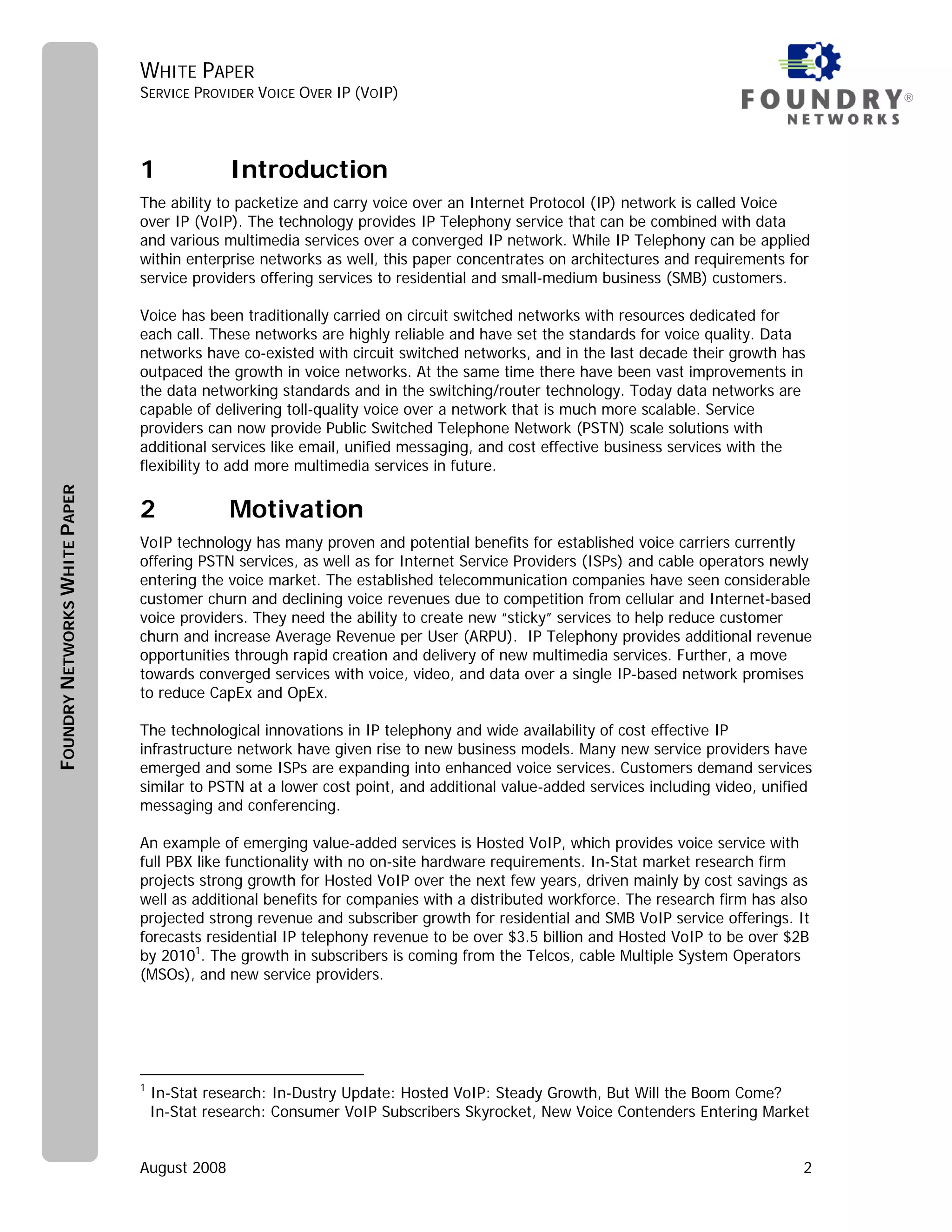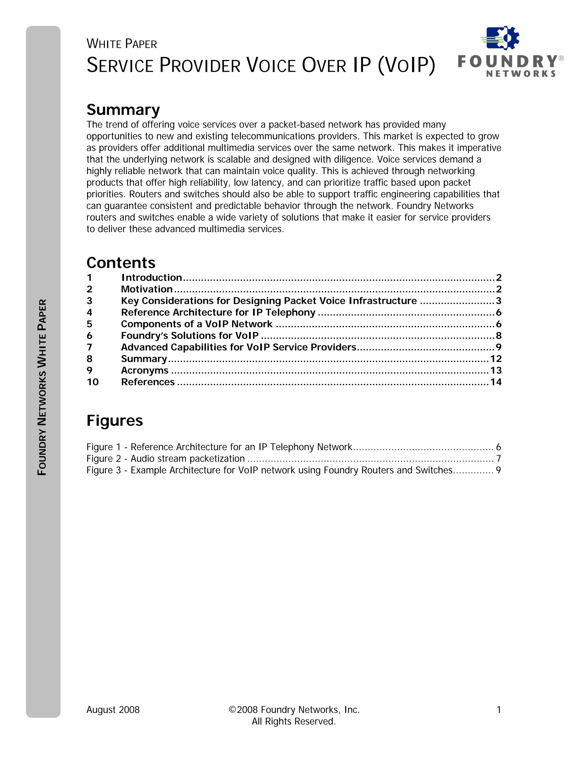 - Foundry Networks' routers and switches enable scalable VoIP solutions through features like traffic prioritization, high availability, and security.