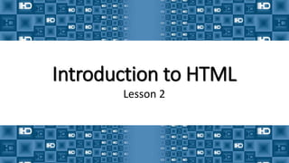 HTML is the primary language used to create web pages. A web page is an electronic document that may contain text, images, sounds, video and hyperlinks. The basic structure of an HTML document includes opening and closing <html>, <head>, <title>, and <body> tags. HTML commands, also known as tags, are enclosed in angle brackets and can have attributes that modify the command.