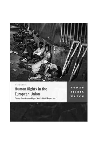 This document is the 2012 Human Rights Watch World Report, which summarizes key human rights issues and events that occurred around the world in 2011. It begins with introductions discussing the international response to the Arab Spring uprisings, human rights developments in the years following the collapse of the Soviet Union, ongoing human rights challenges in Europe, and new protections for the rights of persons with disabilities and domestic workers. The bulk of the report then evaluates the human rights situation in over 90 countries worldwide through dedicated country reports.
