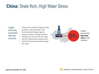 Shale gas has the potential to enhance energy security and reduce emissions for many countries, possibly increasing global natural gas reserves by 47 percent. However, there is a significant challenge regarding the availability of freshwater as governments and businesses explore this resource. Addressing water security is crucial for the sustainable development of shale gas.