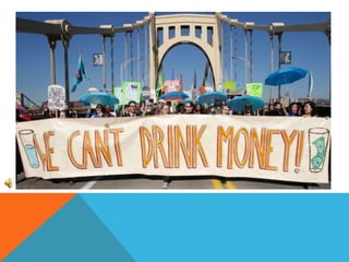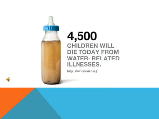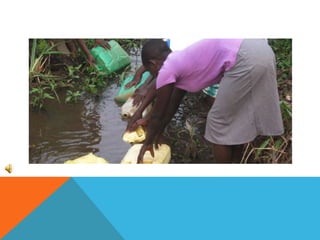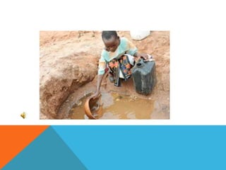 Dirty drinking water has been linked to obesity and diabetes. Contaminants in water can disrupt hormones and metabolic functions in the body. Areas with unsafe water have seen rises in obesity, especially among children and low-income communities. Access to clean water is still a major issue worldwide, with over 663 million people lacking clean water sources. This impacts health, education, and economic development in many developing nations.
