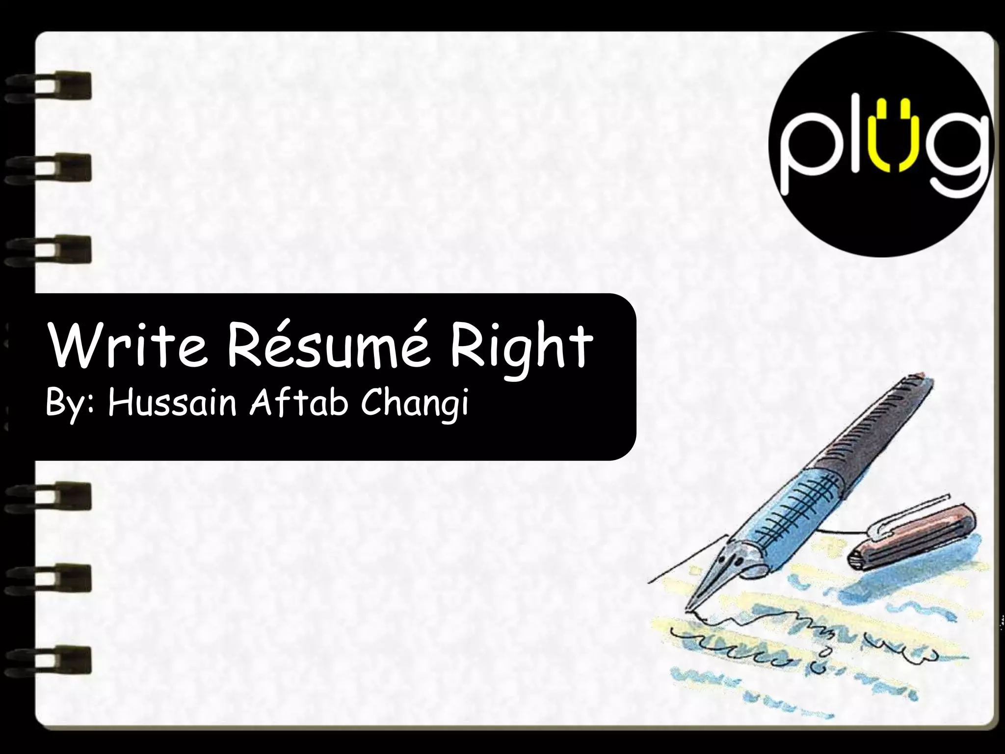 The document is a training program by Hussain Aftab focused on crafting an effective résumé to enhance job-seeking success. It emphasizes the importance of self-awareness, customized objectives, and showcasing competencies to stand out in a competitive job market. Practical tips are provided on resume structure, job applications, and the necessity of clear communication and proof-reading.