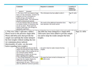 This document provides an overview and outline for a presentation on writing research papers and managing reviews. It discusses frameworks for timely presentation of research and reviews, including the Writer's Algorithm which outlines good writing habits and the typical sections of a paper. The presentation style is meant to be interactive, encouraging attendees to interrupt and share. Key aspects that will be covered include determining the audience and journals, writing the title, abstract, introduction and conclusion, and organizing the methods, results and discussion sections. Guidance is provided on writing each section and ensuring a logical flow that clearly presents the findings and their implications.