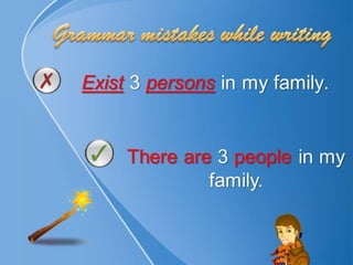 Helping children in their writing process. Example of some common grammar mistakes.