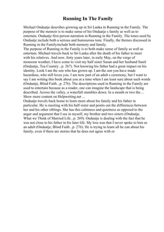 The document explores the complexities of writing an essay about the process of writing itself, highlighting the balance between self-reference and practical advice while avoiding redundancy. It discusses Michael Ondaatje's memoir 'Running in the Family,' where he reflects on his heritage and family dynamics following his father's death, and emphasizes the interplay of memory and identity. Additionally, the text touches on various academic topics from cognitive load in studying methods to the impact of community media, illustrating the diverse subjects covered within the essays.
