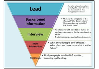 The document provides tips and techniques for writing effective newspaper articles. It covers aspects such as selecting a compelling topic, structuring the article, and utilizing engaging language. Key advice includes the importance of clarity and conciseness to capture readers' attention.