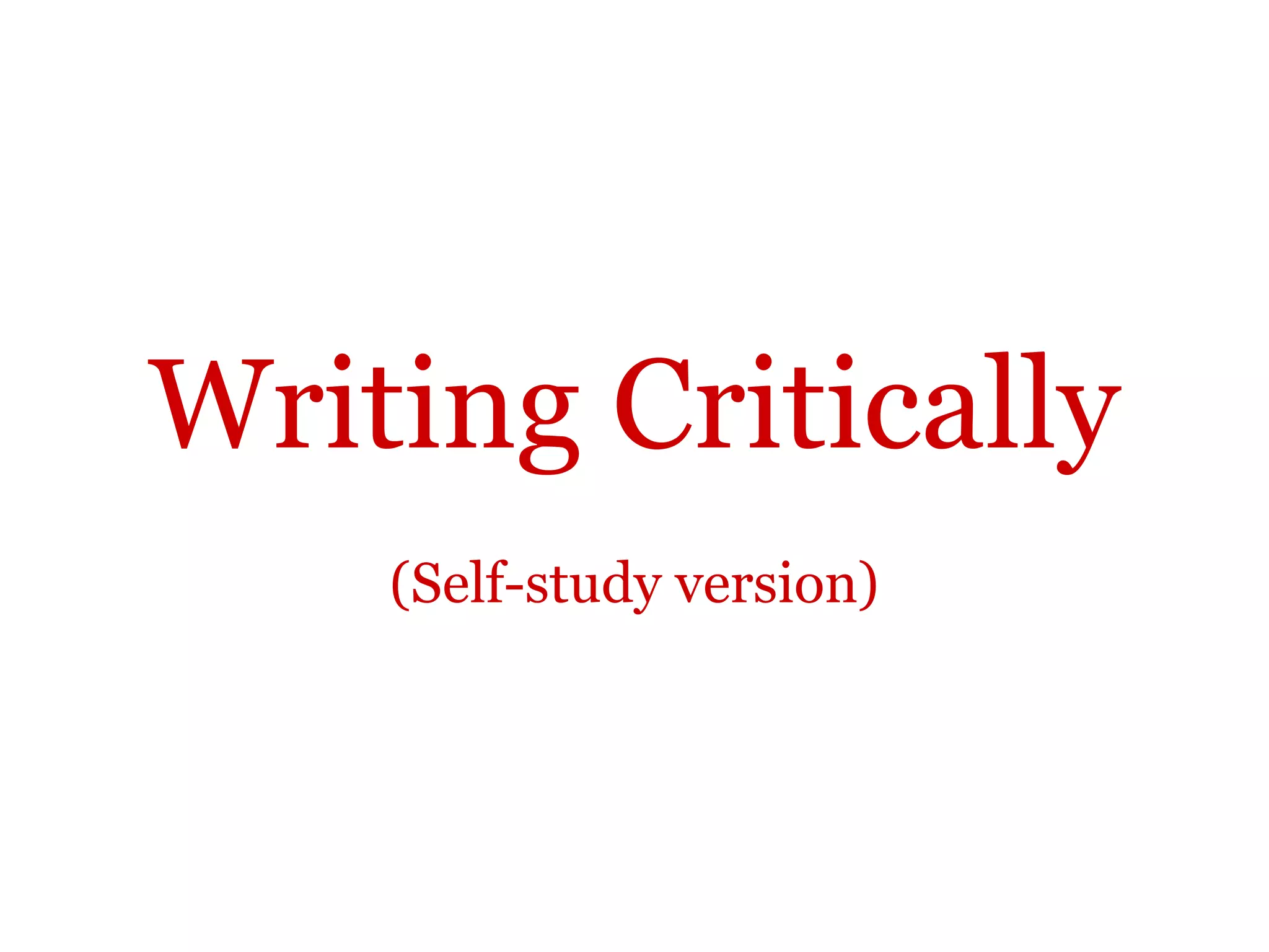 1. Writing critically involves analyzing information, making judgements about its value, and presenting a supported point of view.