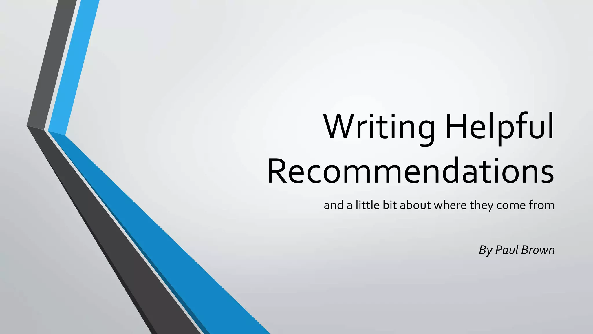 This document discusses how to write helpful recommendations for quality matters reviews. It explains that recommendations should originate from the standards on the rubric and aim to ensure courses continuously improve over time through a collaborative process. Recommendations are most helpful when they are specific, measurable, balanced between constructive criticism and sensitivity, and refer to concrete examples and evidence from the course.