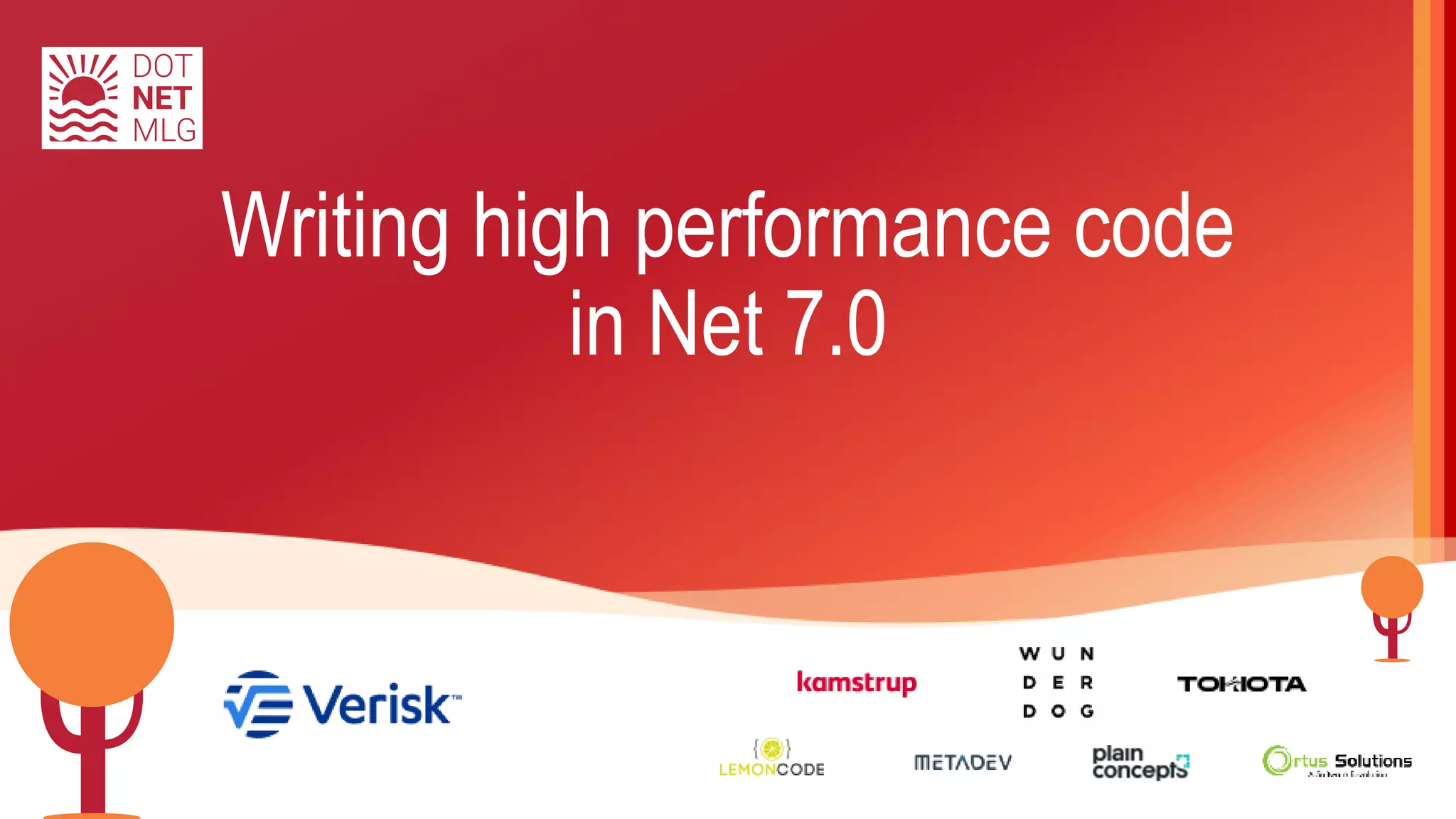 The document discusses writing high performance code in .NET 7.0. It introduces Javier Cantón, the presenter, who has experience in 3D graphics and software architecture. The presentation covers topics like .NET unification, new C# features in .NET 7.0, micro-optimizations for real-time applications and graphics, and techniques for improving performance through value types, SIMD, and hardware intrinsics. It also addresses questions from the audience.