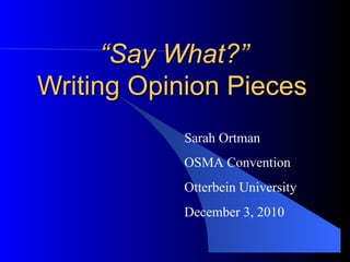 1. The document provides guidance on writing effective opinion pieces for student publications. It stresses the importance of researching topics thoroughly to have an informed opinion and understand different perspectives.