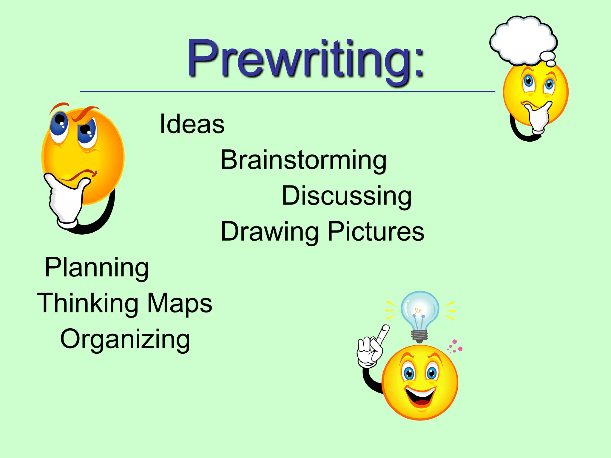 The writing process involves four main steps: prewriting, drafting, revising, and editing. [1] Prewriting involves brainstorming ideas and planning. [2] During drafting, the initial writing takes place without worrying about spelling or grammar. [3] Revising improves the writing by getting feedback and making changes. Editing fixes mistakes related to capitalization, grammar, punctuation, and spelling.