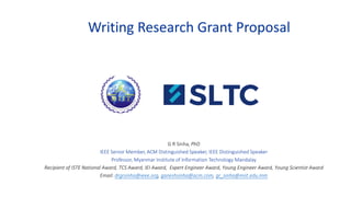 This document provides guidance on writing a research grant proposal. It discusses key components of a research proposal including objectives, introduction/problem statement, literature review, methodology, timeline, budget, and significance. The document emphasizes selecting a focused research topic and questions, developing the proposal early, and seeking feedback. Funding sources mentioned include Indo-Sri Lanka programs, Sri Lankan research grants, and international foundations. Overall, the document outlines the essential elements and process for crafting a competitive research grant proposal.