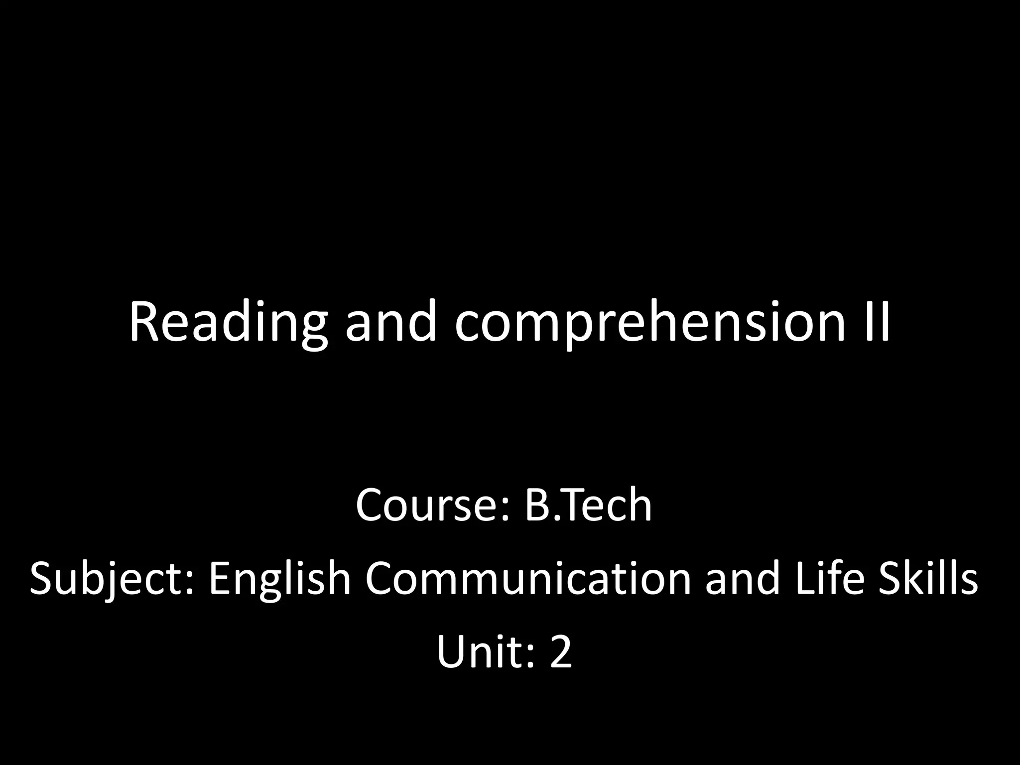 The document provides information on various writing skills and reading comprehension techniques. It discusses the different types of writing such as explorative, descriptive, narrative, persuasive, formal, analytical and chronological writing. It also outlines the key elements of discursive writing such as introduction, background, arguments, counter arguments and conclusion. Additionally, it discusses reading goals, choosing appropriate texts, scanning, skimming and note-taking techniques to improve reading comprehension.