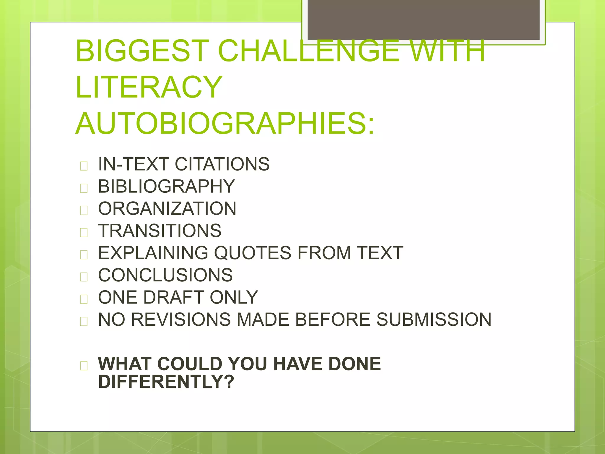 This document outlines topics from an APA & Writing Workshop course taught by Dr. Cullerton. It discusses challenges with literacy autobiographies such as in-text citations, organization, and conclusions. It also covers different types of writing like narrative, descriptive, expository, persuasive, and analytical. Examples are provided for persuasive and analytical essays. Other topics covered include elements of an essay, writing in response to texts, and defining text complexity.