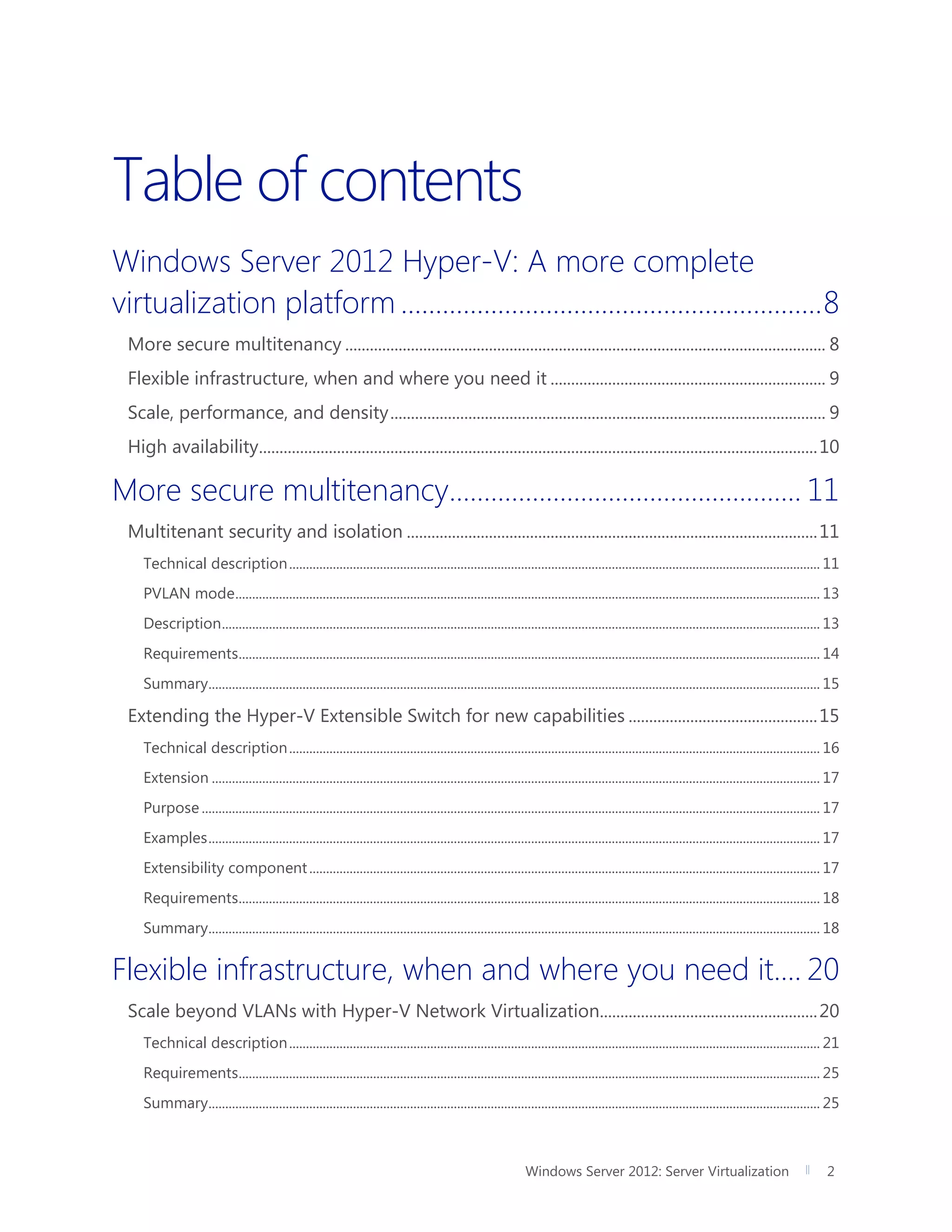 The document discusses Windows Server 2012 Hyper-V, emphasizing its advantages for server virtualization, including improved multitenancy security, flexible infrastructure, and enhanced scalability and performance. Key features include migrating virtual machines without downtime, new automation capabilities, and significant advancements in resource management and high availability. Overall, it highlights how Windows Server 2012 allows organizations to optimize resource usage and reduce operational costs while ensuring secure and efficient virtualization environments.