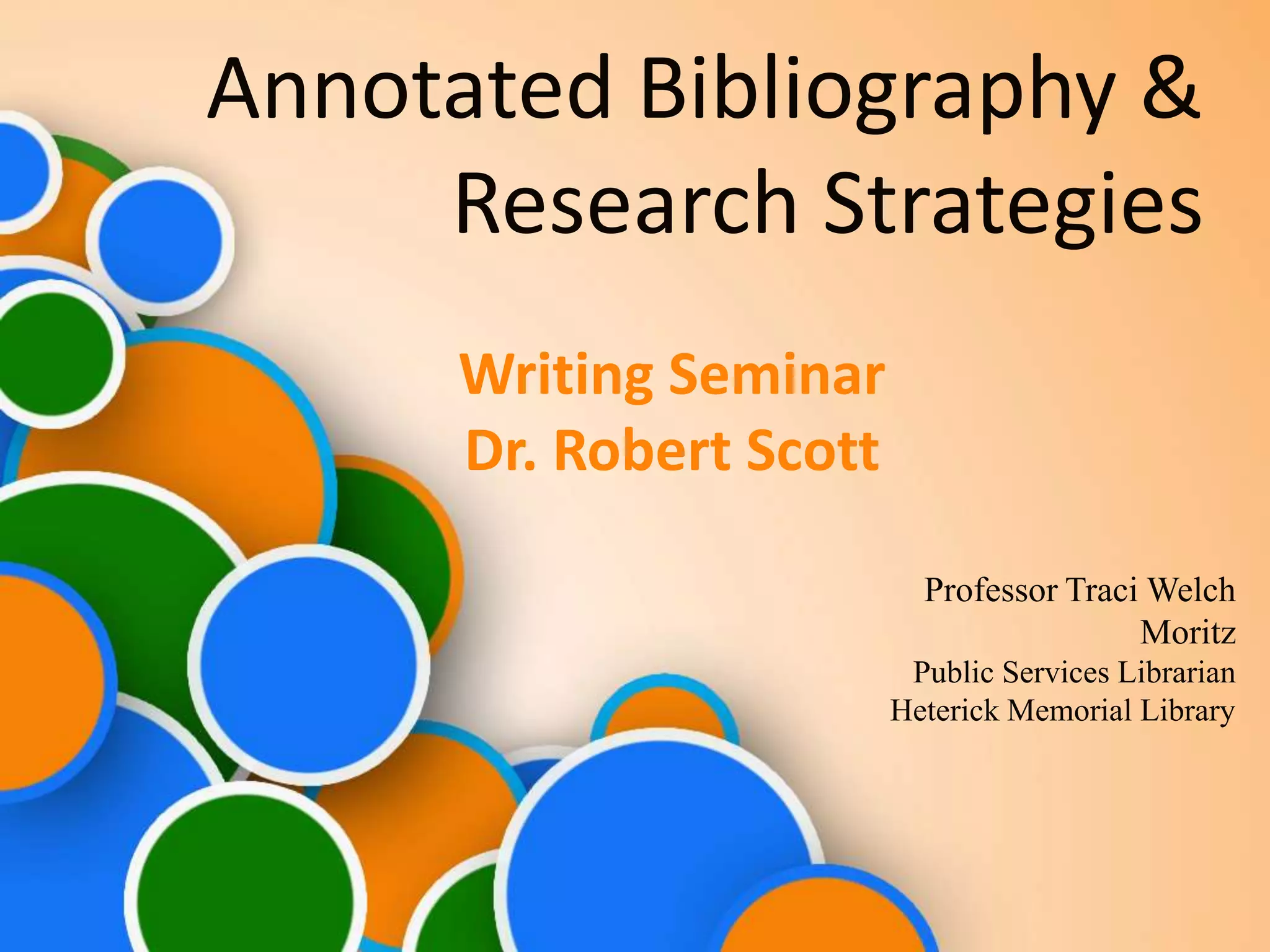 This document provides an overview of library resources and research strategies at Heterick Memorial Library. It introduces library staff, describes the various collections and resources available, and outlines a seven step research process for students. Key points covered include using the library catalog POLAR to find books, using OhioLINK to request items, searching databases to find journal articles, evaluating online sources, and citing sources properly. The document aims to familiarize students with the library and provide guidance on conducting academic research.