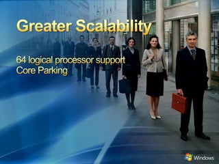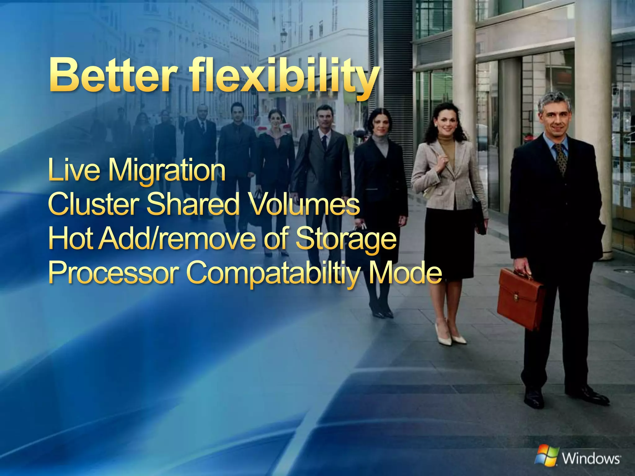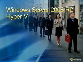 This document summarizes the key features and benefits of Microsoft's Hyper-V platform. It highlights how Hyper-V offers significant cost savings through lower upfront costs and ongoing costs compared to alternative virtualization platforms. It also improves IT flexibility and agility by enabling features like live migration, cluster shared volumes, hot-add/removal of storage, and CPU compatibility for live migration. These features along with improved performance, scalability, and ability to park/sleep unused CPU cores allow for increased server consolidation and a more efficient use of computing resources.