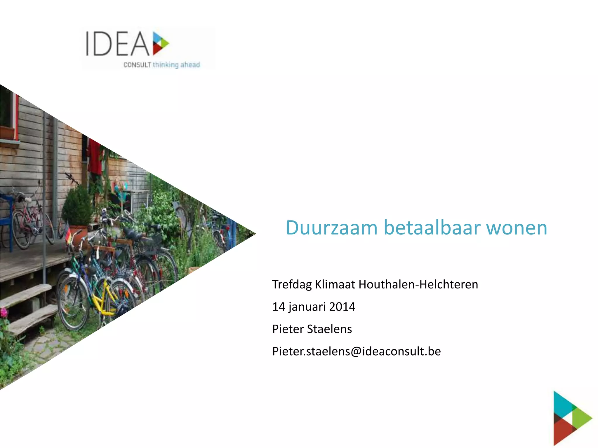 #13 Betaalbaarheid en duurzaamheid liggen niet op dezelfde lijn, maar sluiten elkaar ook niet uit.Volledige betaalbaarheid ten allen prijzewillen koppelen aan een koopwoning of nieuwbouwwoning is niet altijd even haalbaar. In Brussel en in enkele Vlaamse steden kunnen slechts tussen 10% en 20% van de gezinnen zich een goede en aan de gezinssituatie aangepaste koopwoning veroorloven. In veel gevallen is inzetten op duurzaamheid bij renovatie van het bestaande patrimonium interessanter om duurzaamheid te combineren met betaalbaarheid.Triodos: houdt rekening met gedaalde energiekosten bij aankoop van een duurzame woning hypotheeknemer heeft minder energiekosten en dus hoger restinkomen Triodos laat snellere afbetaling toe onder dezelfde voorwaarden minder intrestlasten voor hypotheeknemerAangroeiwoningen heeft ook nadelen: onconsistente ruimtelijke ontwikkeling, veel werven in het gebied,...