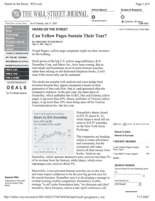 My bearish call on Yellow Book operators prior to dramatic sell-offs