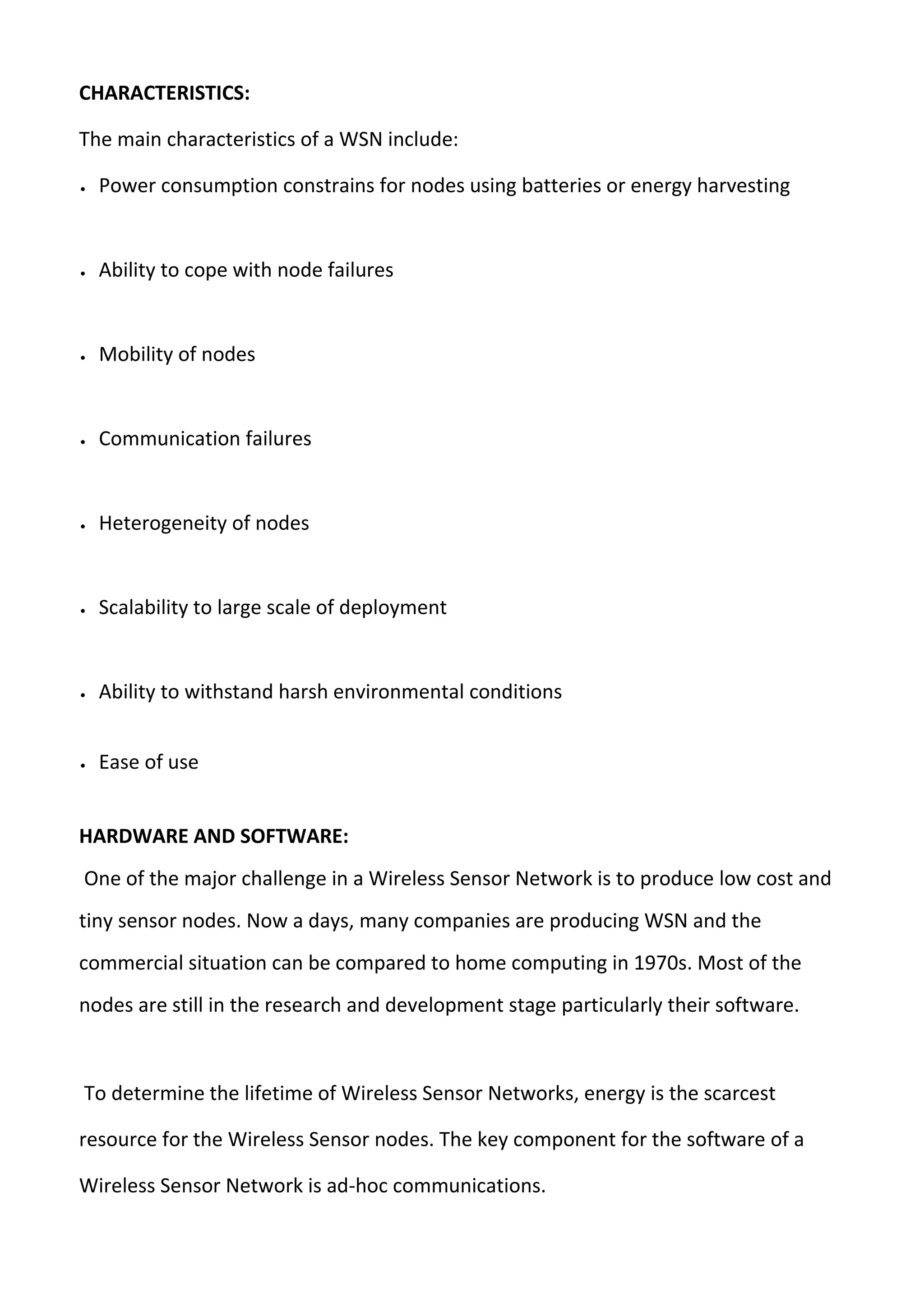 Wireless sensor networks are composed of nodes that communicate wirelessly and self-organize after deployment. Each node contains processing capability, memory, an RF transceiver and antenna, a power source, and sensors. Systems can include thousands or tens of thousands of nodes communicating to monitor environments. It is expected that within 10-15 years, wireless sensor networks will cover the world and connect to the Internet, making the Internet a physical network. Research in this area includes workshops and conferences each year focused on algorithms and protocols to maximize network lifetime while ensuring robustness, fault tolerance, and self-configuration.