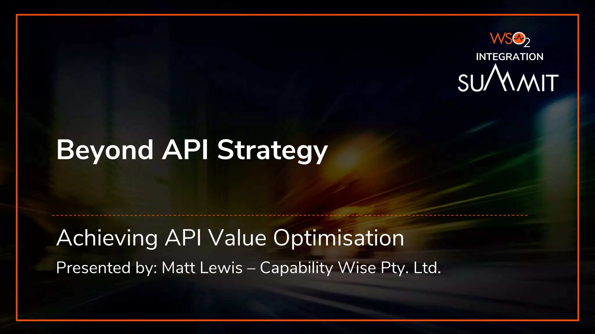 The Integration Summit 2019 focused on optimizing API value and emphasized the importance of aligning API strategy with customer needs. It addressed challenges such as understanding usage patterns and ensuring sustainability through ongoing change and community involvement. The presentation underscored that poor strategy can lead to limited success, highlighting key considerations for effective API management.
