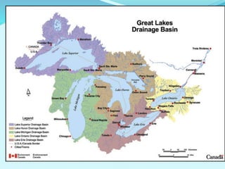 The document provides information about the Great Lakes region, including: