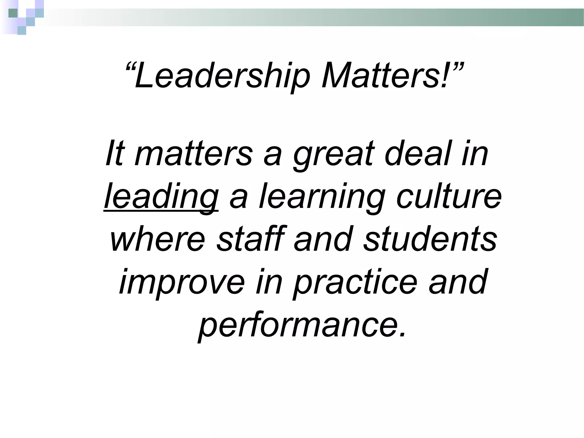 This document discusses the importance of leadership in improving instructional practice and student performance. It emphasizes that collaboration is key to creating a learning culture where staff and students improve. Additionally, it stresses that changing adult behavior requires creating a community where new beliefs can be practiced. Throughout, it provides perspectives on effective leadership, including mobilizing people to tackle tough problems, demonstrating unchanging principles like integrity and accountability, and ensuring high quality instruction by getting the right people to teach and supporting their ongoing growth.