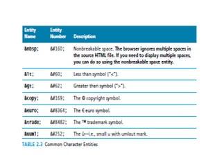 2) An explanation of HTML syntax including tags, elements, attributes, and nesting.