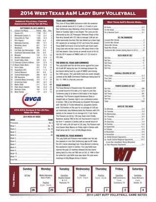 The document provides information about an upcoming volleyball weekend for West Texas A&M University, including: