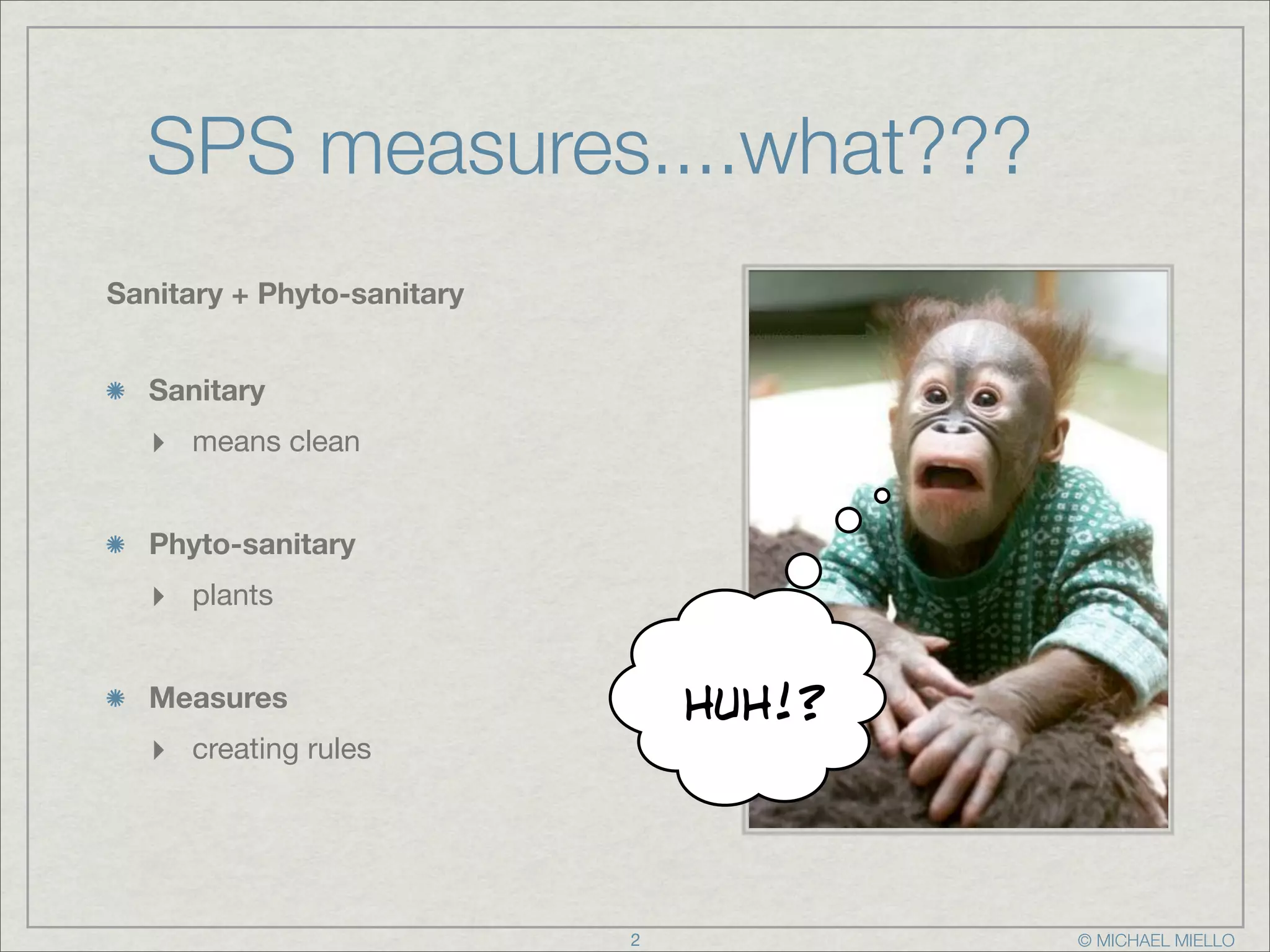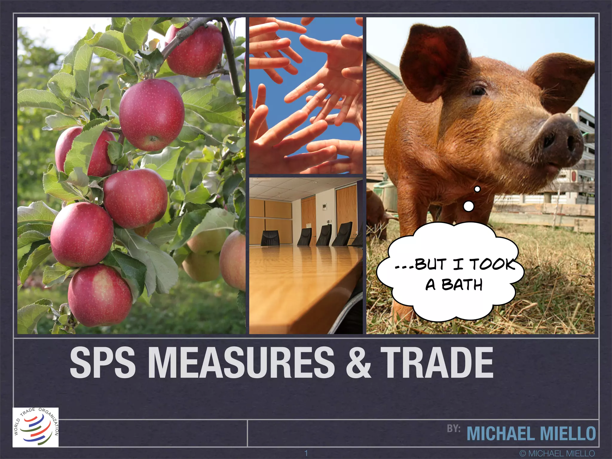 The document discusses sanitary and phytosanitary (SPS) measures, which are safety requirements set by governments to protect human, animal, and environmental health from potential risks. It highlights the role of international organizations like the WTO in establishing standards and preventing unjustified discrimination in trade, alongside a case study on the misuse of SPS measures regarding the import of apples from the U.S. to Japan. Key actors involved in SPS measures include various national ministries and international bodies, with ongoing disputes exemplified by recent news on pest inspections.