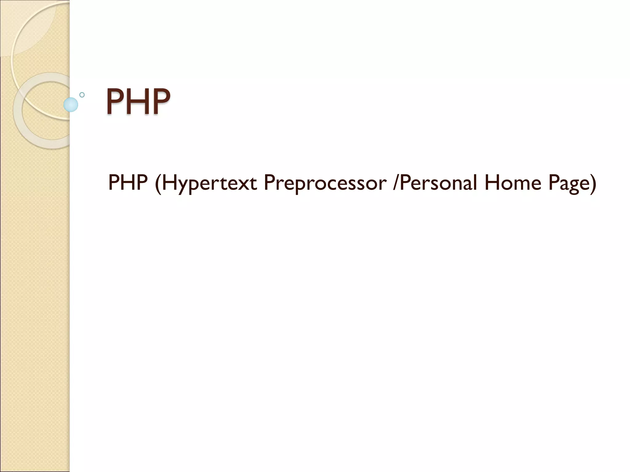 PHP is a server-side scripting language that is widely used for web development. It allows developers to add dynamic content to websites. Some key points about PHP include: