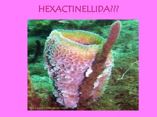 Hexactinellida adalah kelompok spons laut yang memiliki spikula dari silika berbentuk triakson dengan enam jari. Mereka hidup soliter pada kedalaman 200 - 1.000 m dan memiliki tubuh yang berbentuk tabung atau keranjang dengan warna pucat, dengan contoh spesies seperti Euplectella aspergilium. Klasifikasi hexactinellida terbagi menjadi dua ordo: hexastophora dan amphidiscophora.