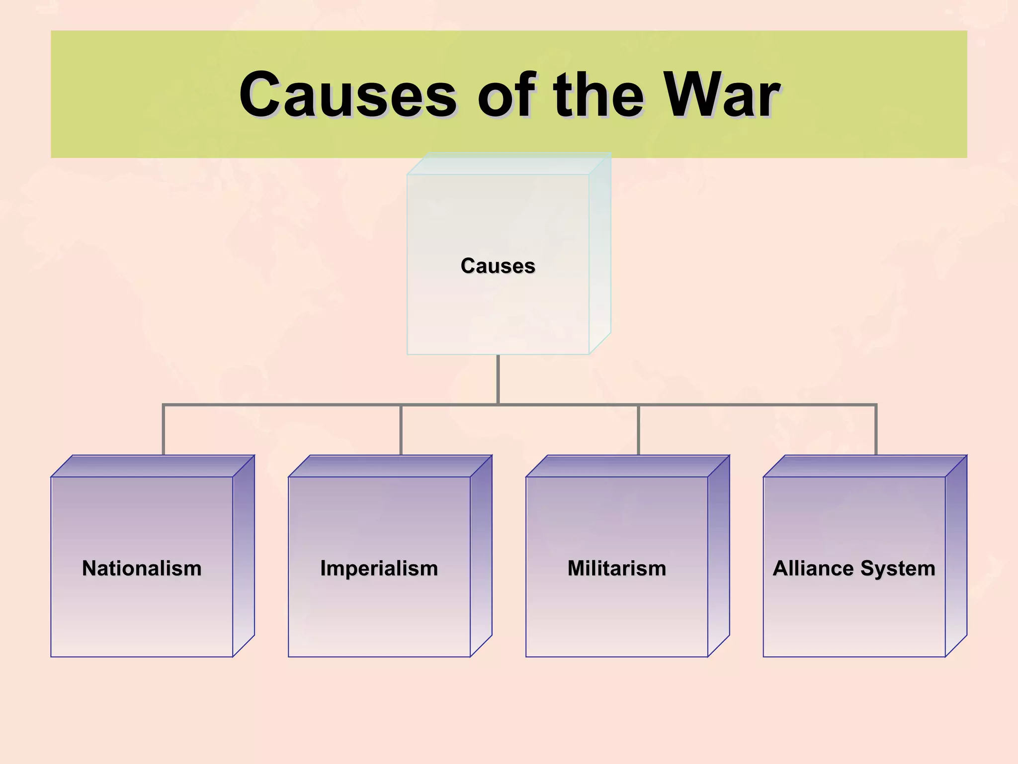 The document summarizes the key causes and events of World War I. It discusses how nationalism, militarism, imperialism, and the alliance system contributed to rising tensions between European powers. The assassination of Archduke Franz Ferdinand provided the spark that led countries to take sides and enter the war. The U.S. eventually joined the Allies and helped ensure their victory through industrial production, military support, and fresh troops arriving in Europe. The Treaty of Versailles after the war was punitive towards Germany but rejected Woodrow Wilson's vision of a just peace through self-determination and the League of Nations.