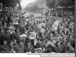 World War 2 pulled the US out of the Great Depression as the economy shifted to focus on wartime production. Various government agencies were established to direct industries to make military goods and manage supply shortages and price controls. Factories converted operations to produce airplanes, ships, weapons and ammunition. By 1945 the US had produced over 300,000 airplanes and other military equipment, becoming known as the "Arsenal of Democracy". Financing the war required increased taxes and sales of war bonds. Over 14 million women joined the workforce during the war to replace men serving in the military.