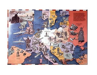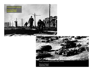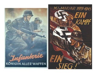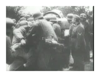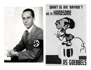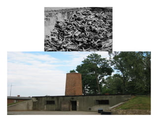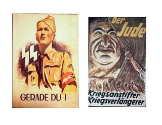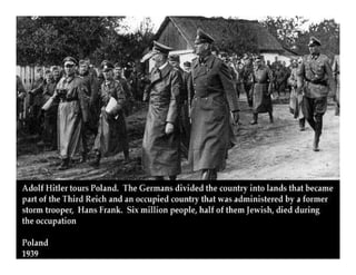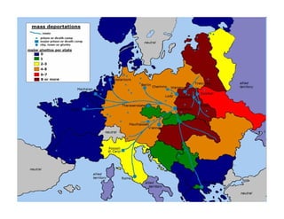The document summarizes key events from 1919-1941 that led up to World War 2, including the Treaty of Versailles which imposed harsh terms on Germany after WWI, the rise of Hitler and the Nazis in Germany, and their implementation of racist policies and persecution of Jews that escalated throughout the 1930s, culminating in the mass murder and genocide of Jews and other groups in Germany and occupied territories during World War 2 known as the Holocaust.