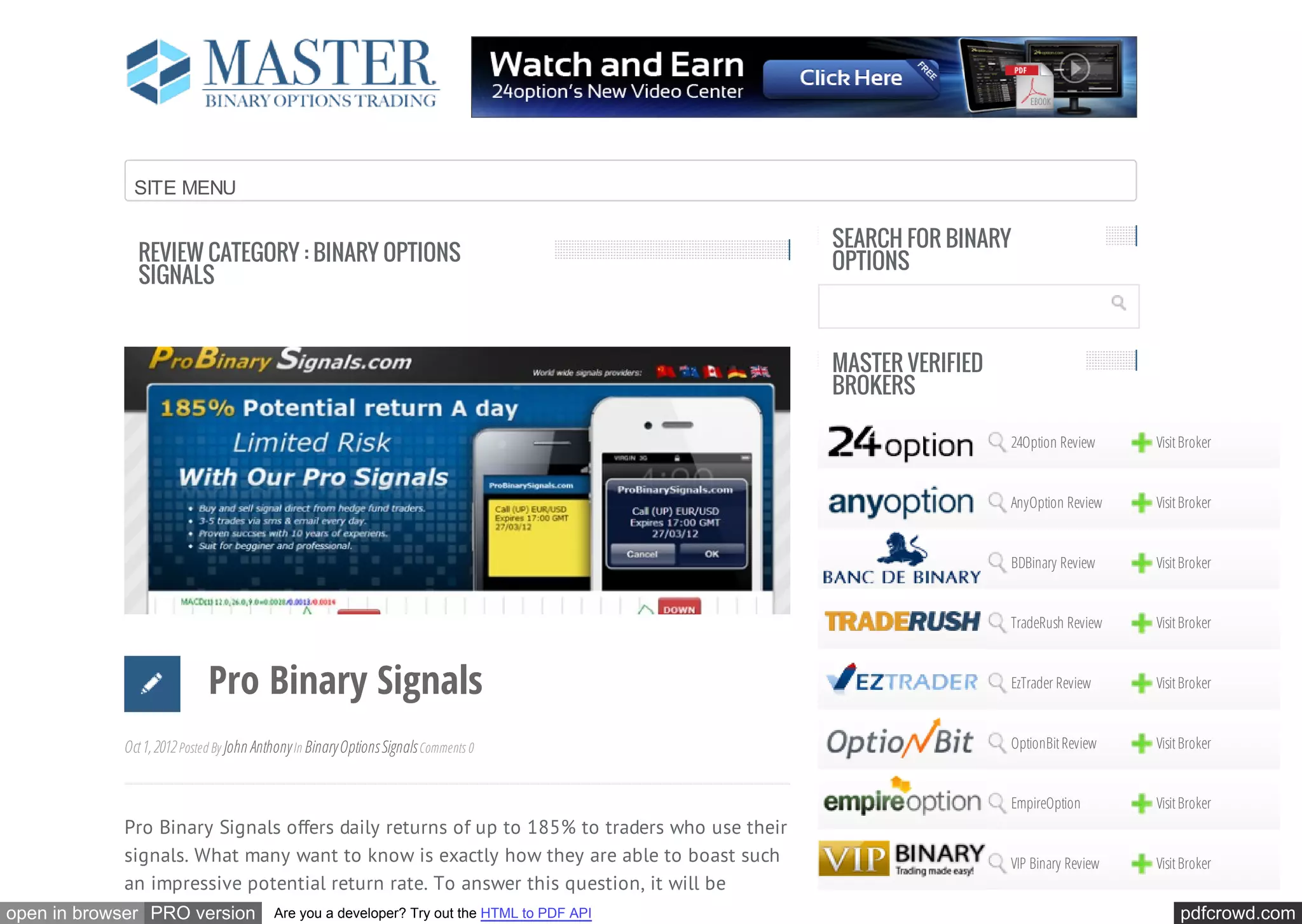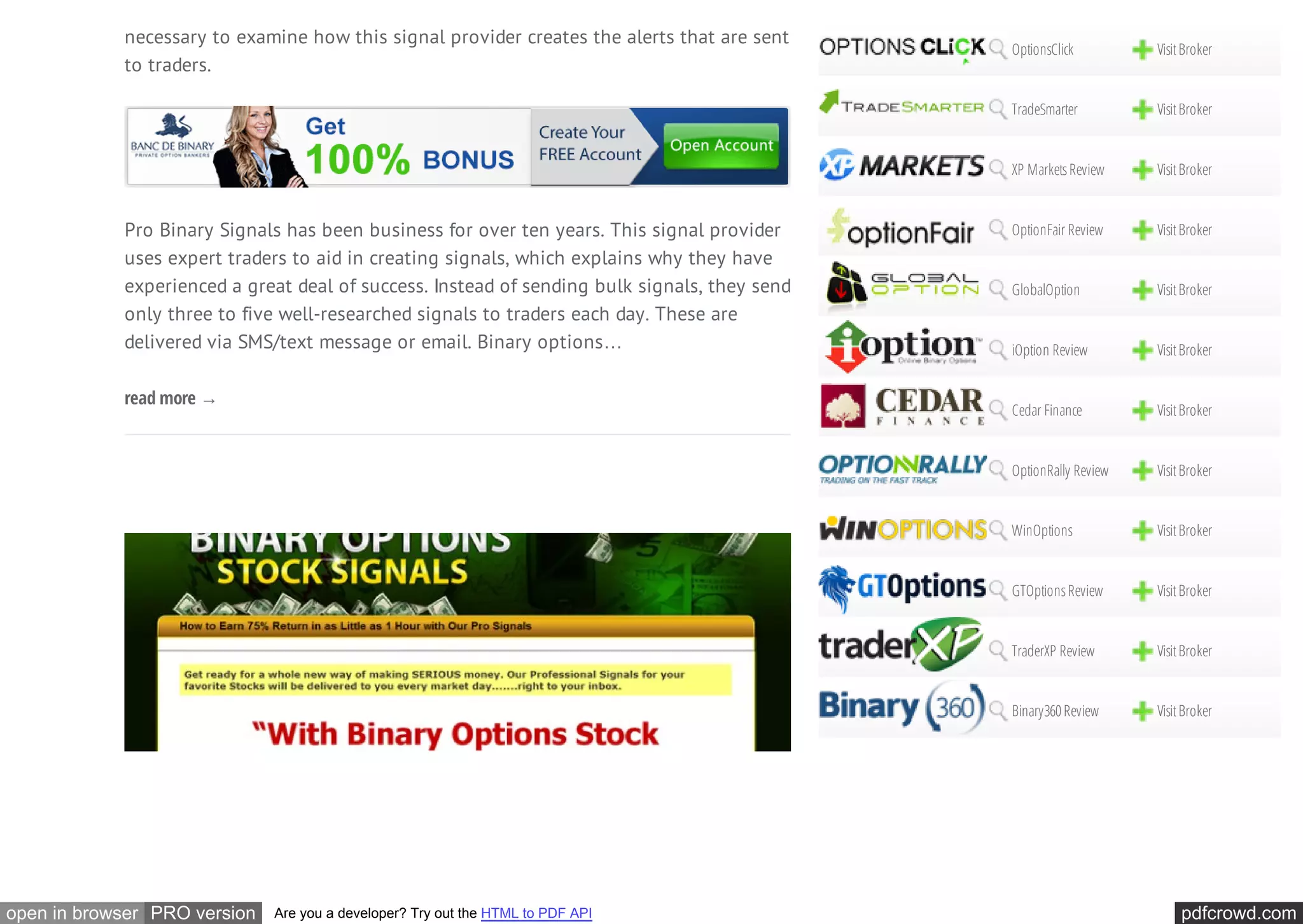 Pro Binary Signals offers daily returns of up to 185% to traders who use their signals. They have been in business for over ten years and use expert traders to create well-researched signals that are delivered via text or email with only 3 to 5 signals per day. Binary Options Stock Signals focuses solely on seven stocks and aims to help traders increase profits through more accurate predictions by providing trade information including the asset, contract type, and timeframe. Up Down Signals provides 3-hour signals with around 70% accuracy that are created by expert traders and available via subscription.