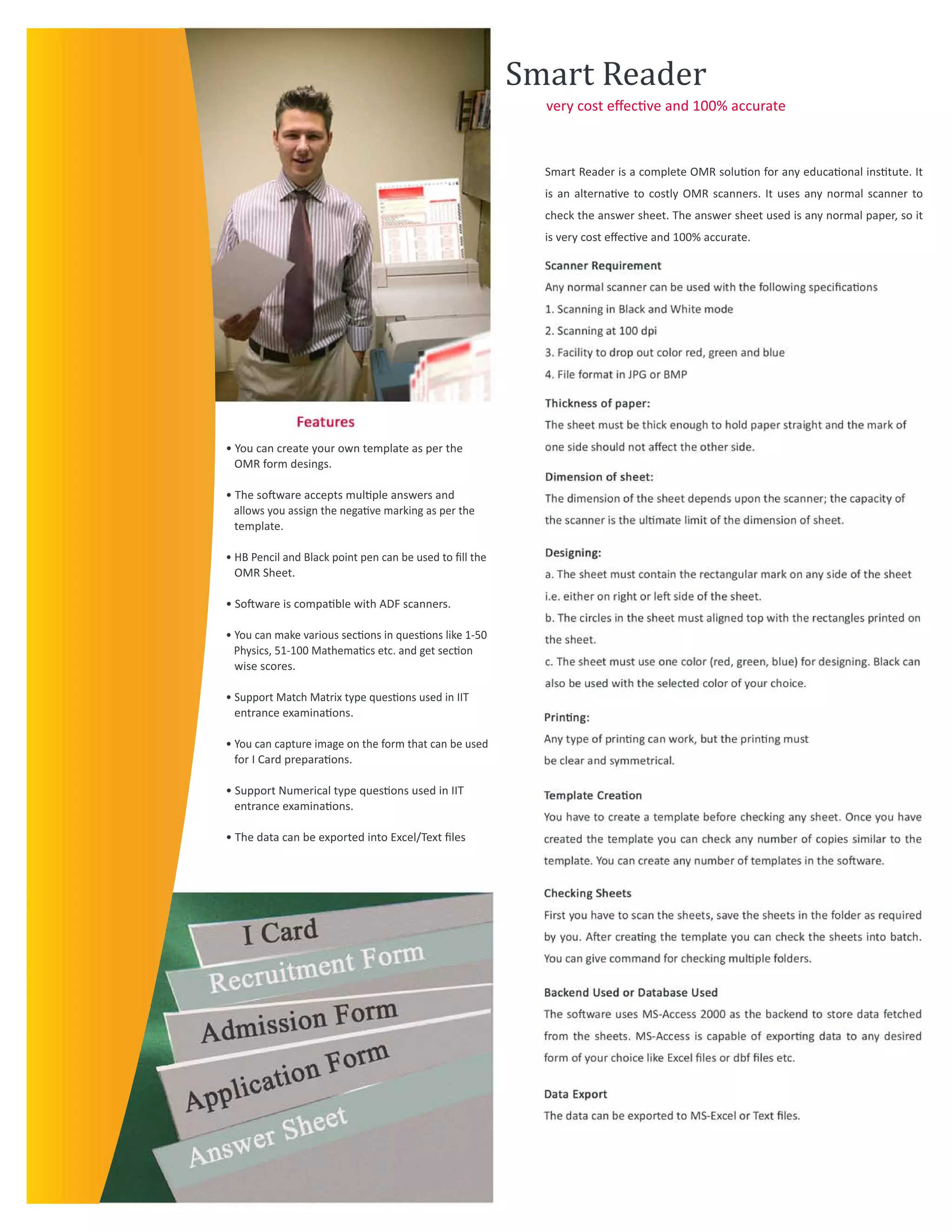 OMR home has its own experienced team of software developers which can develop all kinds of customized software’s. Our main aim is to provide the client with best solution and utility. OMR Home offers services from OMR sheet designing, OMR sheet or OMR forms Printing, Processing Bulk OMR forms, Providing complete solution with scanners.