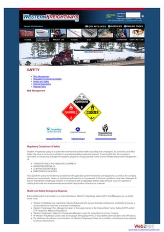 Western Freightways is committed to safety and environmental protection through adherence to regulations and continuous improvement in risk management. The company maintains a trained risk management team and a network of emergency response contractors ready for incidents involving hazardous materials. Additionally, compliance with relevant laws is ensured via established guidelines and dedicated management systems.