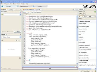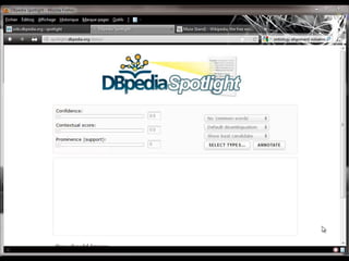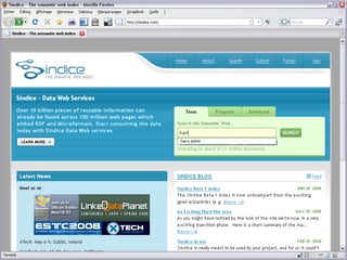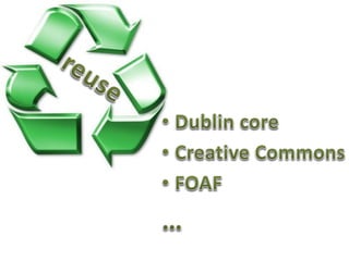The document provides an introduction to Semantic Web and Linked Data. It discusses key concepts such as RDF, which represents data as subject-predicate-object triples that can be connected to form a graph. RDF has several syntaxes including XML, Turtle, and JSON. Properties in RDF triples can link to other resources or contain literal values. Types are identified with URIs and vocabularies are designed to be extensible. The goal of Linked Data is to publish structured data on the web and link it to other data to form a global data web.
