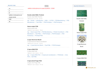 This document appears to contain tags and metadata for various printed circuit board (PCB) manufacturing topics. Some of the tags included relate to double-sided boards, heavy copper PCBs, multilayer boards, flexible circuits, materials, defects, quality control processes and more. The document provides information on products, technologies and procedures for PCB manufacturing.