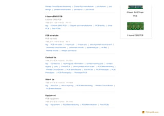 This document contains tags and metadata for various printed circuit board (PCB) products and manufacturing processes. It includes tags for double-sided and multilayer PCBs, aluminum boards, boards with gold fingers and immersion tin finishes. It also includes tags about PCB layout principles, warping prevention, milling technology and choosing a reliable fabrication company. The document provides information on PCB-related products, technologies and the PCB manufacturing process.