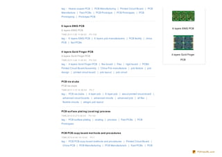 This document contains tags related to various types of printed circuit boards and processes. It lists tags for six-layer bluetooth module circuit boards, double sided HASL finished boards, 2 layer aluminum boards, 12L multilayer PCBs, heavy copper PCBs, 6 layers ENIG PCBs, 4 layers gold finger PCBs, PCB via stubs, PCB surface plating processes, double sided immersion silver, multilayer hole processes, exploring PCB surface coatings, PCB international standards, conduction/via/plug holes, 1.6mm FR4 4 layer immersion gold boards, flexible printed circuit board materials, flexible PCB manufacturing trends, FPC via metallization,