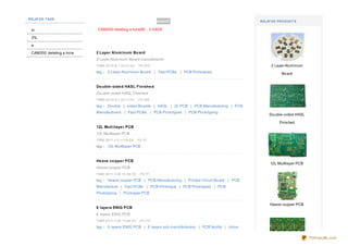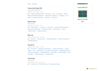 This document contains tags and metadata for various printed circuit board (PCB) manufacturing terms and products. It includes tags related to multilayer boards, board finishes like HASL and ENIG, board materials, manufacturing technologies, and product categories like rigid and flex boards. The tags provide keywords for searching and identifying related PCB products and information.