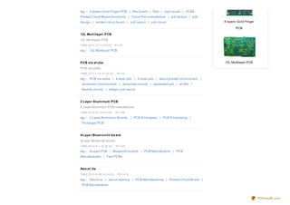 This document contains tags and summaries for various topics related to printed circuit boards (PCBs) including different PCB designs (e.g. double-sided, multilayer), manufacturing technologies, materials, defects, trends and companies. The tags provide keywords for searching and the summaries provide short descriptions of each topic.