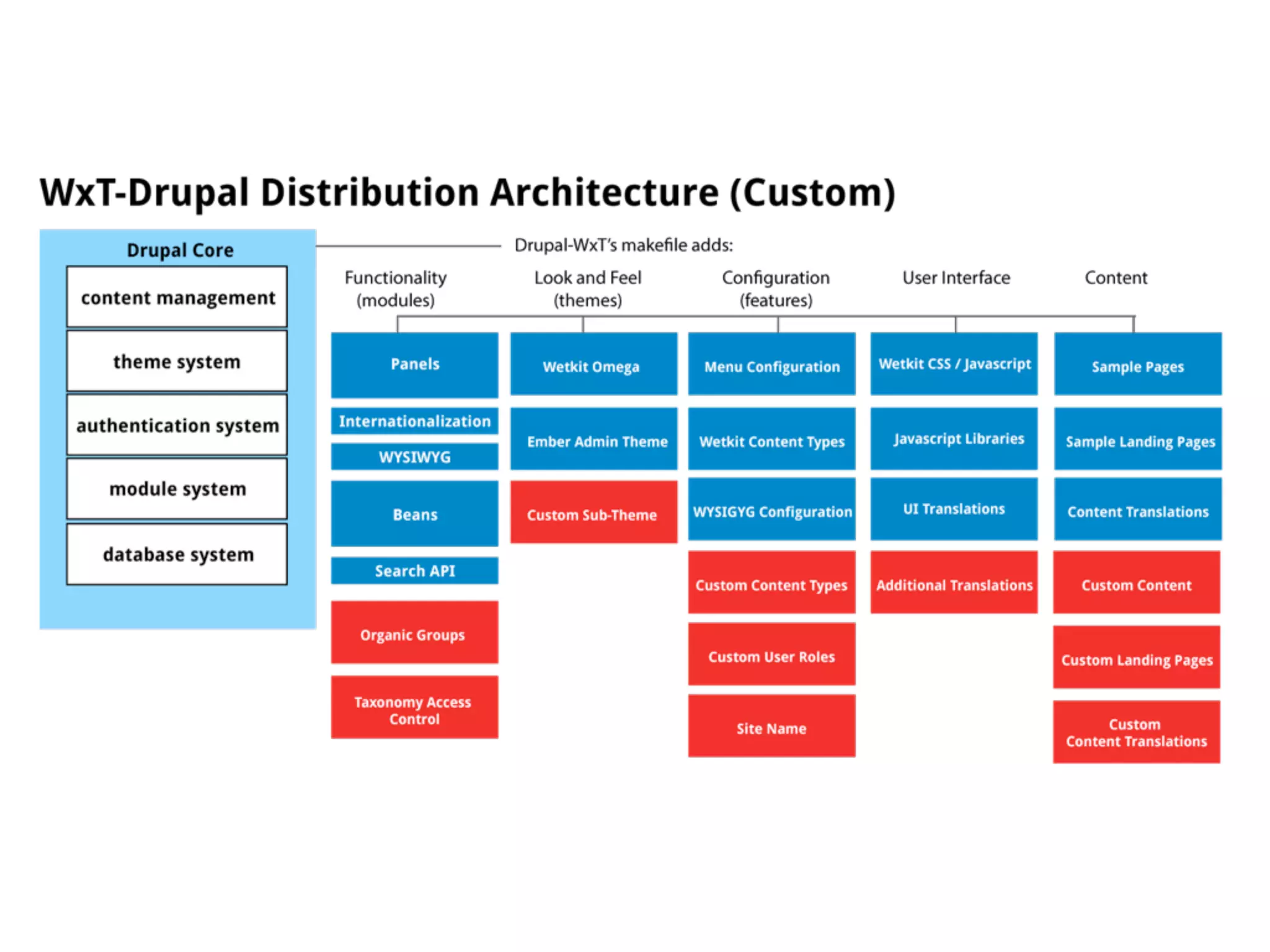 This document introduces the Drupal Web Experience Toolkit (WxT) distribution. It provides concise overviews of the key features and functionality included in the distribution, such as content management, multilingual and responsive design support, and pre-configured modules, themes and content types. Instructions are also given for customizing the distribution to build out a new website that maintains the core accessibility and design standards of the Web Experience Toolkit.
