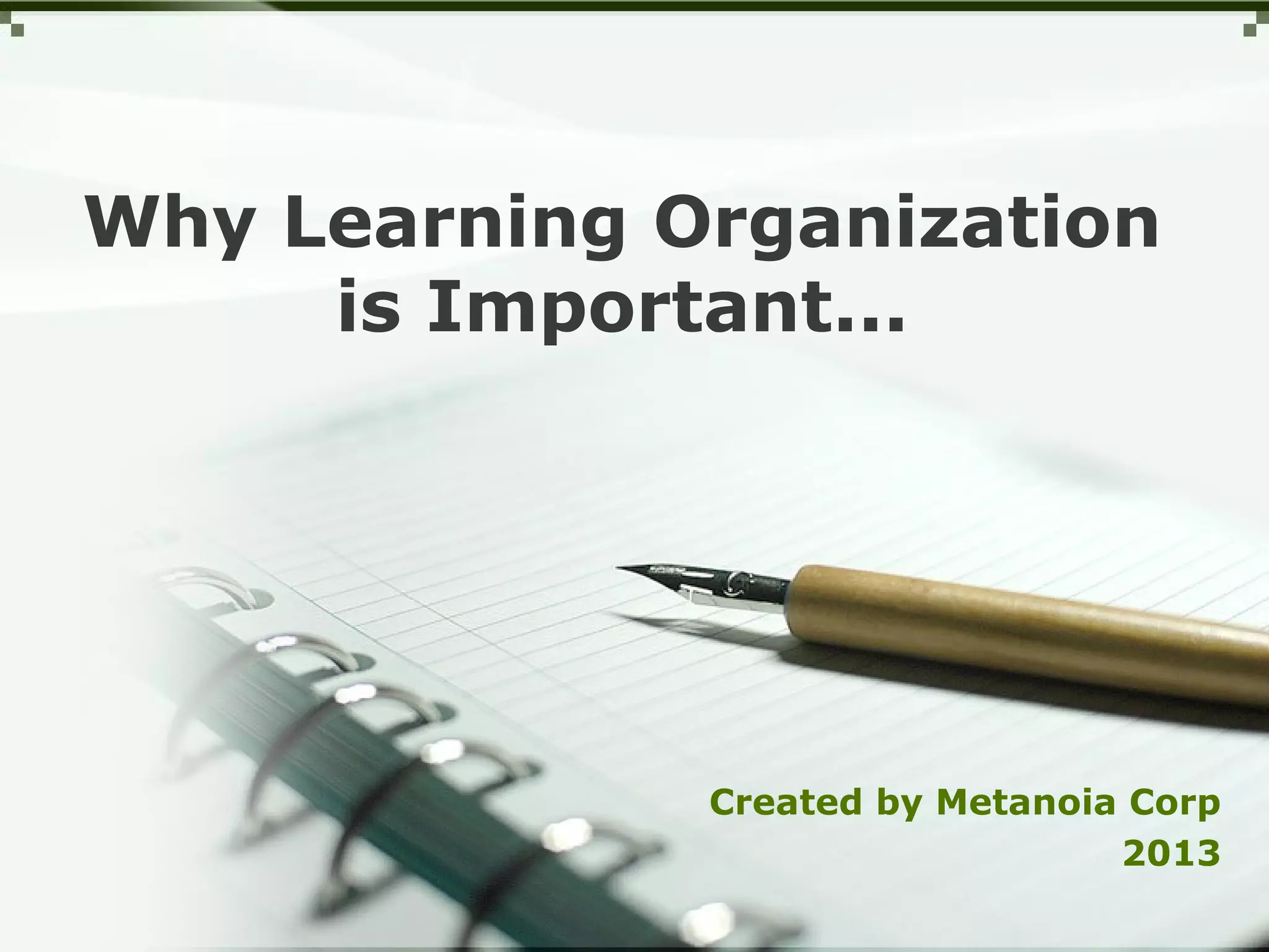 Learning organizations are important for three key reasons: 1) They promote self-directed and emancipatory learning through both informal and formal means to understand individuals' needs and interests. 2) Shared knowledge and communication provide the basis for coordinating organizational responses to problems. 3) Learning helps individuals gain awareness and control over their habits and growth, with different domains having distinct learning goals, needs, and approaches.